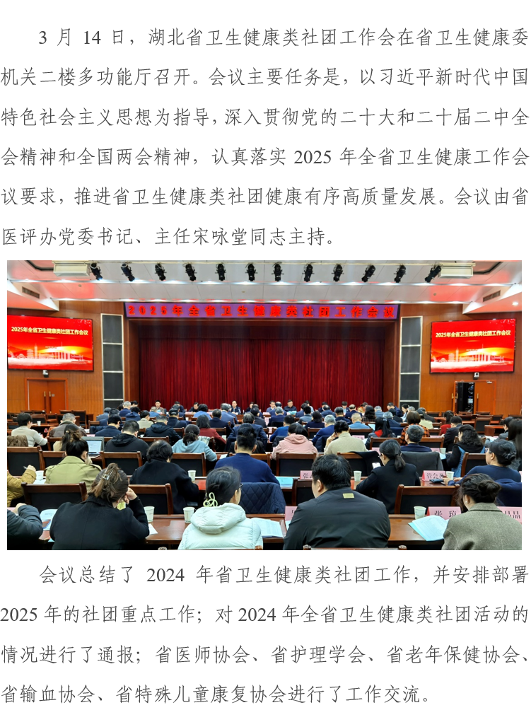 2025年湖北省衛(wèi)生健康類社團工作會在武漢召開